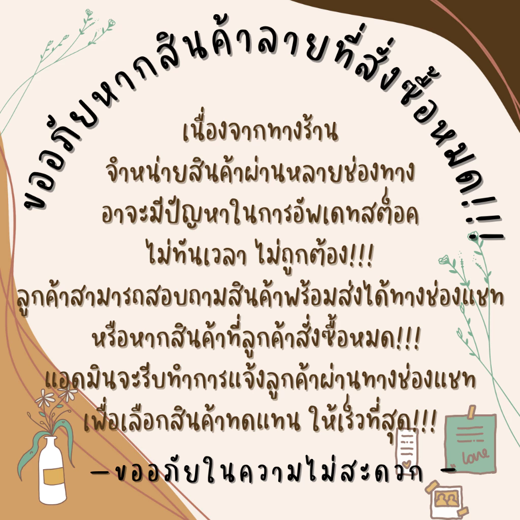 *ก่อนสั่งซื้อกรุณาตรวจสอบข้อมูลให้ถูกต้อง กรอกชื่อนามสกุลที่อยู่ผู้รับของและเบอร์โทรให้ละเอียดชัดเจนนะคะ*